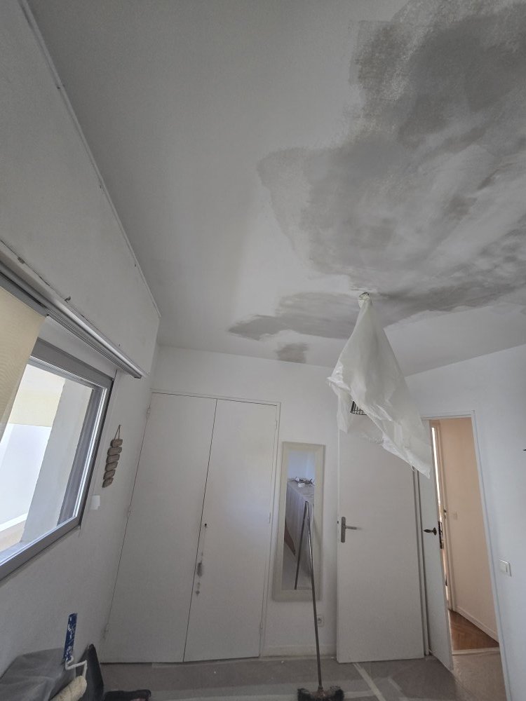 Suite à un dégât des eaux survenu dans un appartement situé à Marseille 13009, la société Du Sol au Plafond, spécialisée dans les travaux de rénovation intérieure et de peinture, est intervenue pour une remise en état complète d’une chambre, WC et salle de bain 👷‍♂️. Ce type de sinistre nécessite une prise en charge rapide, méthodique et professionnelle afin de garantir la pérennité des supports et un rendu esthétique durable.