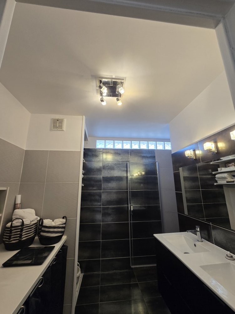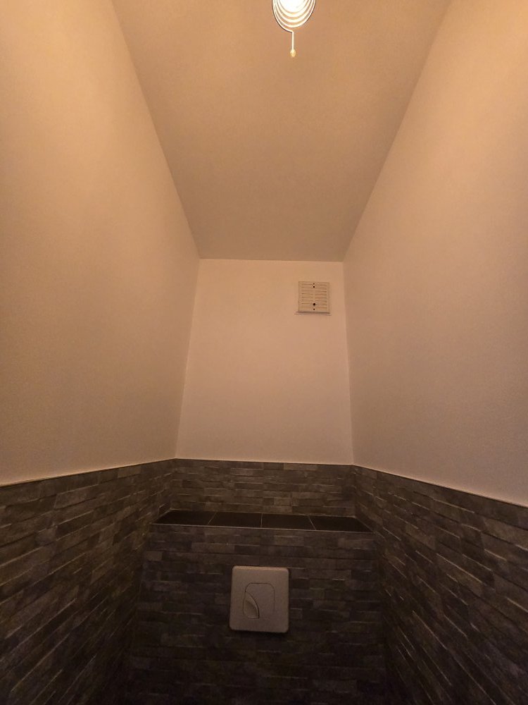 ✔️ Deux couches de peinture acrylique velours sur les murs et plafonds des WC et de la salle de bain, offrant une excellente résistance et une finition lessivable adaptée aux pièces humides