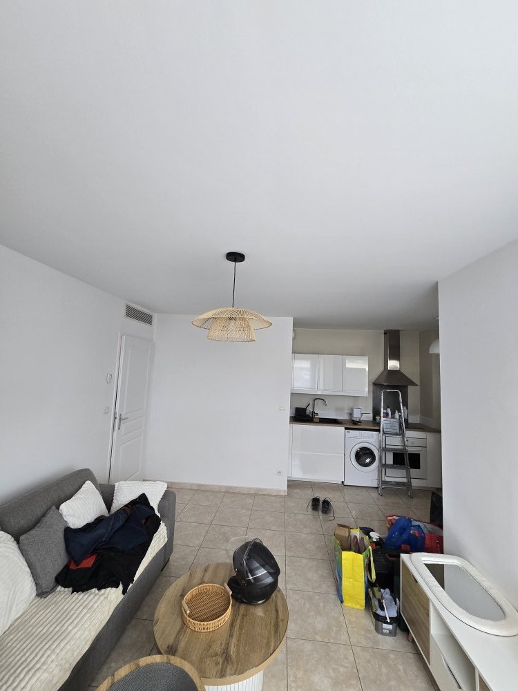 Pour cette rénovation de T2 à Marseille 13008, nous avons réalisé une préparation complète des murs et plafonds.
